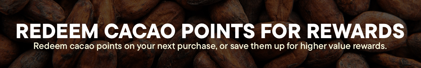 Join our rewards program and save, earn and accumulate Cacao Credits as you spend and redeem them for discounts on your next purchase. Oh yes, and did we mention birthday treats, and member-only special deals too?