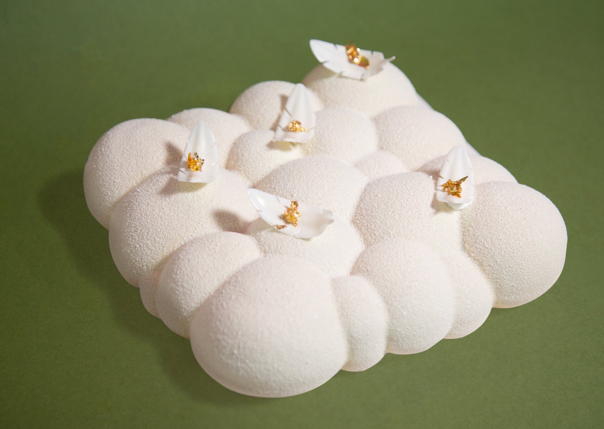 Gula Melaka Mousse, Pandan Coconut custard, Mascarpone Cheese parfait, Coffee Cremeux, Pistachio Sponge